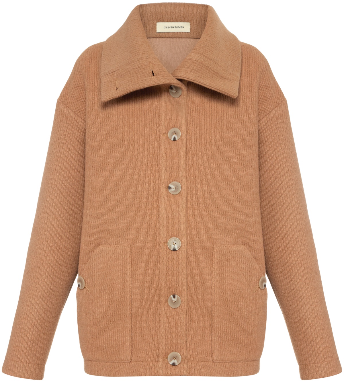 Toffee button-down jacket is done in a sustainable and ethical manner - it is rendered from deadstock fabric that is finished with a ribbed texture for a sumptuous feel. The piece fits slightly oversized for guaranteed comfort and can be worn in myriad ways, transforming into a comfortable rollneck sweater in a matter of seconds.