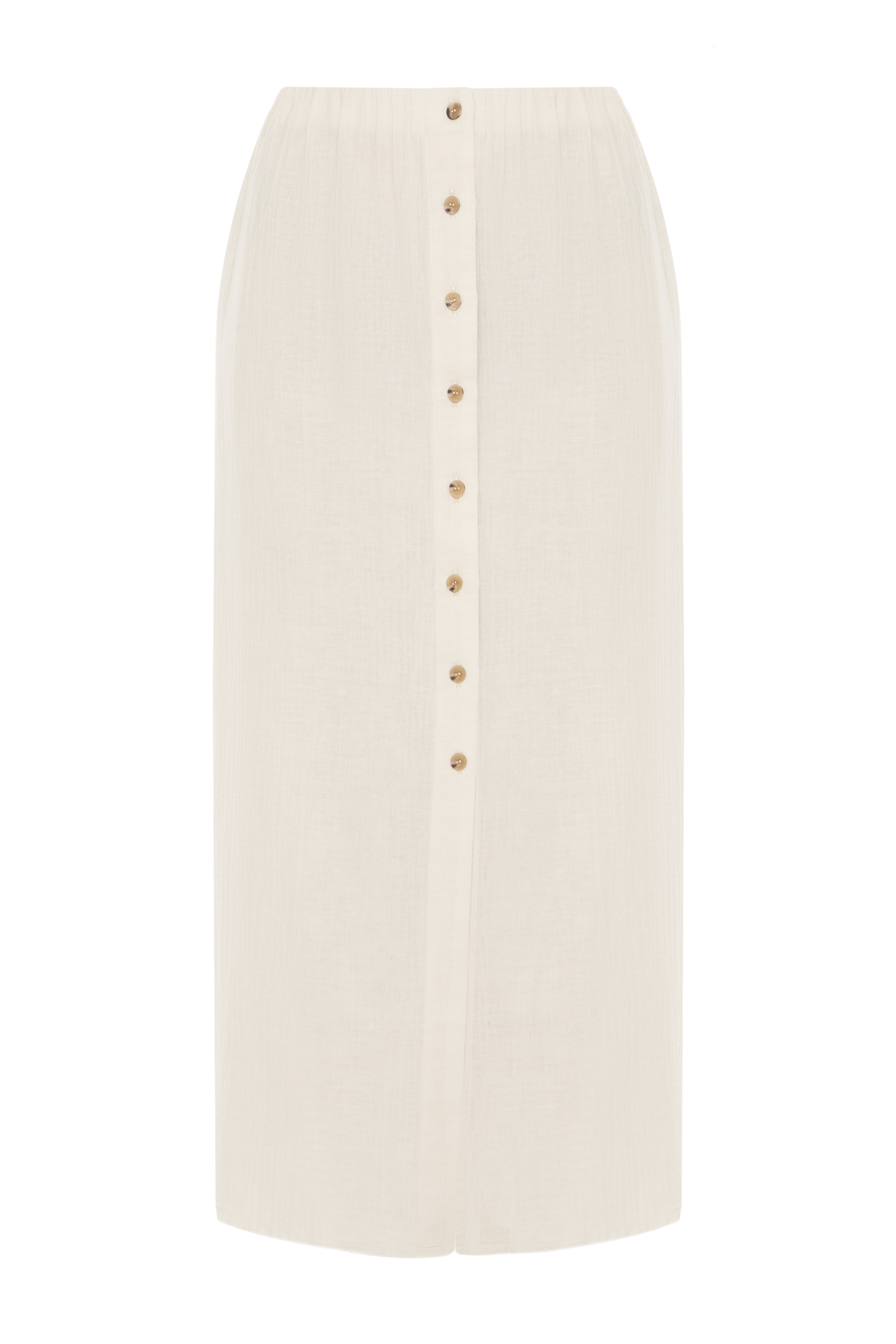 Summer staple from O'SEVEN ELEVEN, Beige Midi Skirt is constructed with a front button-down closure that makes it the perfect cover-up for poolside lounging and walks on a beach. Breathable cotton fabrication helps the piece to strike a perfect balance between effortless elegance and comfort while elasticated waist enriches casual identity of it.