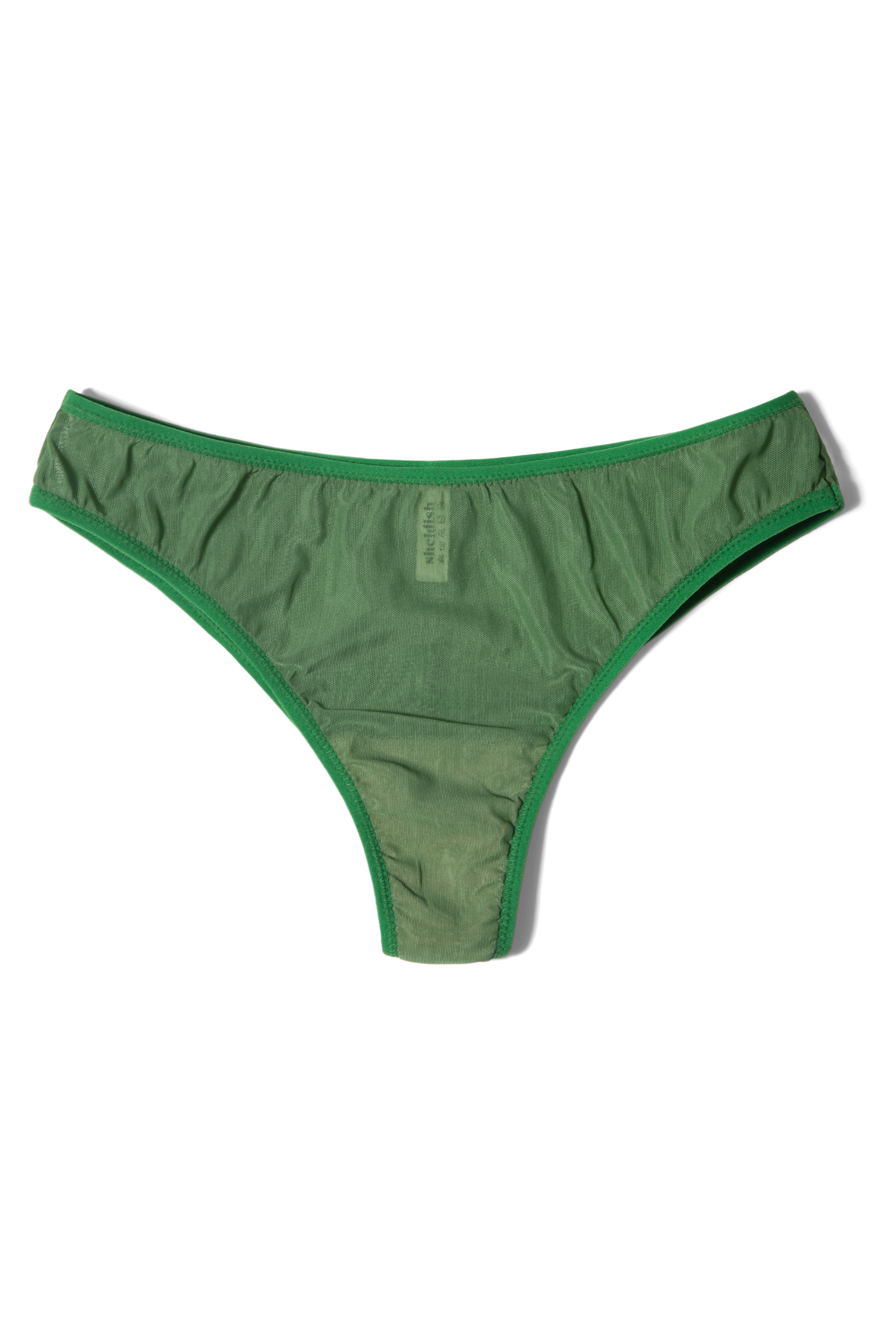 Founded with an ethos to update women's day-to-day with stylish yet conscious lingerie choices, Sheidish offers Green Brazillian Panty. Imagined in soft-to-touch tulle to provide a featherlight feel and a flattering look, the style features a elasticated waistband and a midrise silhouette underpin day-to-night looks with support.