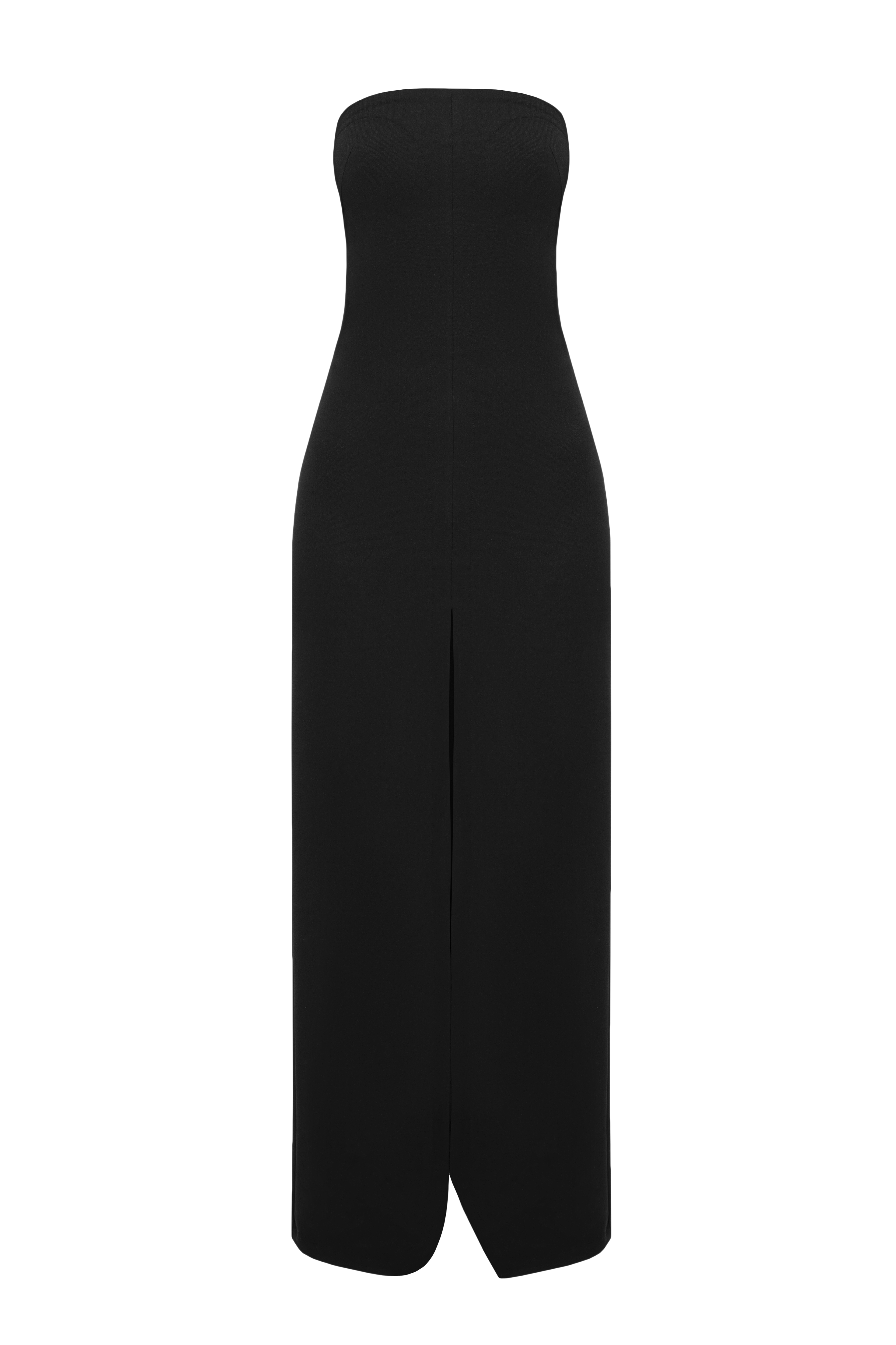 The beauty of Tatuna's creations lies in their ability to complement one's existing wardrobe effortlessly - take Black Midi Dress as an example. Crafted from a lightweight wool into a slimline slender silhouette, the piece fastens with a back zip closure and features a strapless neckline along with the double vent to ease mobility.