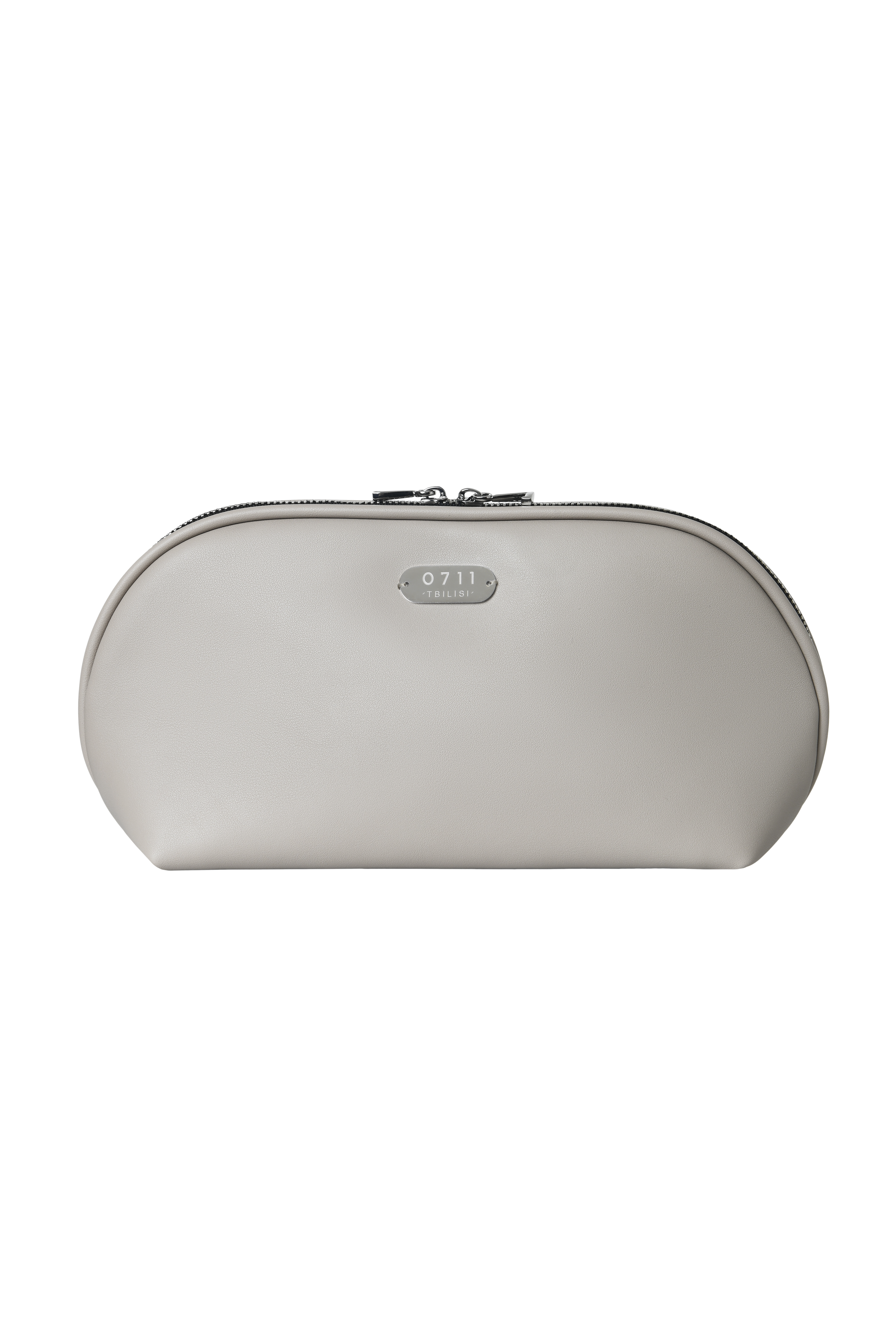 Stone cosmetic pouch with signature zip closure, logo at the front & soft corners.