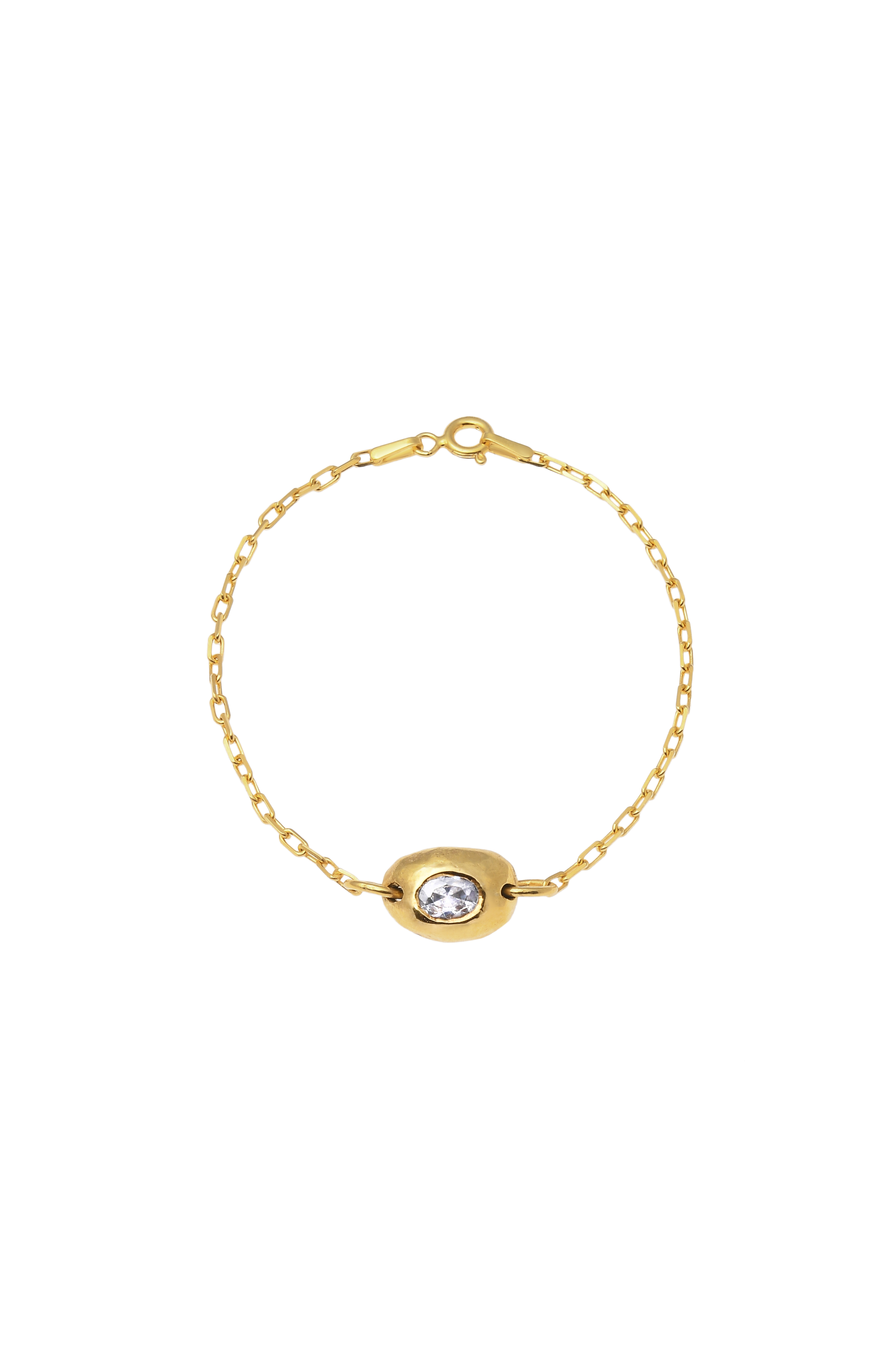 The Phoebe Chain Bracelet with White Gem adds a refined touch to everyday elegance. Crafted from polished metal, it features a delicate chain accented with a luminous white stone that catches the light with subtle sophistication. Wear it solo for a minimalist finish or layer it with your favorite pieces for a modern, effortless look.